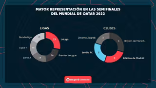 LaLiga tiene la mayor representación de jugadores en la ronda de semifinales del Mundial de Catar 2022 con un total de 22 futbolistas, comparado con el resto de grandes ligas europeas, la mayoría de ellos miembros de Atlético de Madrid y Sevilla.