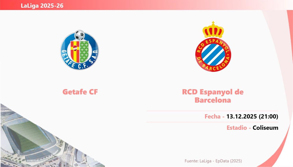 El partido que enfrenta a Getafe y Espanyol de la jornada 16 de LaLiga EA Sports 2025-26 se disputará el sábado 13 de diciembre a las 21.00 horas en el Coliseum.