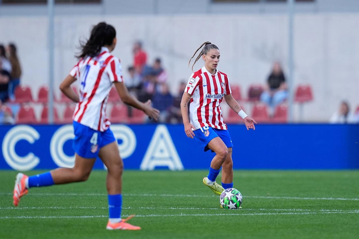 La brasileña Gio Garbelini (Atlético de Madrid), ante el Manchester United en el partido de la Women's Champions League 2025-26 en el Centro Deportivo Wanda Alcala de Henares. - Dennis Agyeman / AFP7 / Europa Press