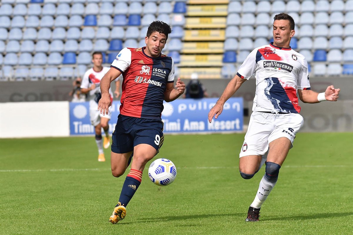 Giovanni Simeone (izda) onduce la pelota en un partido del Cagliari de la Serie A 2020-2021 - Luigi Canu/LiveMedia/DPPI/AFP7/Europa Press