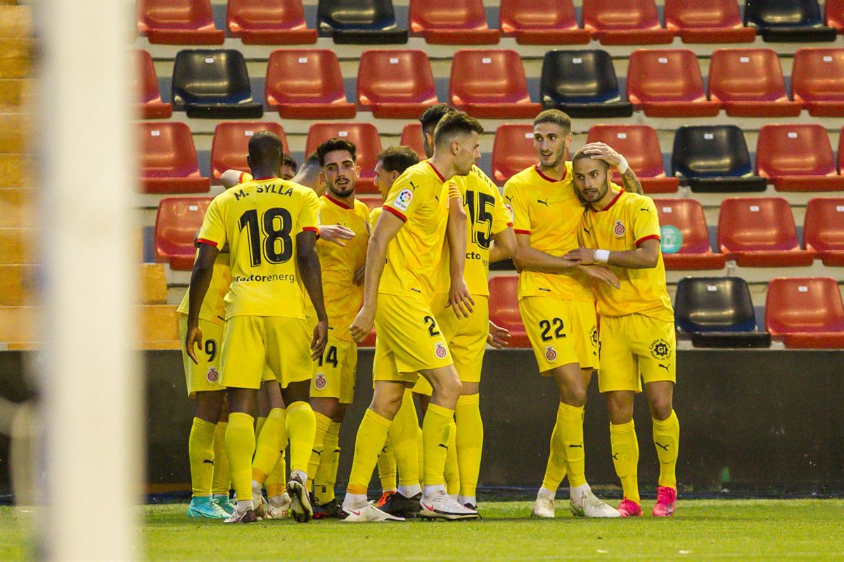 GIRONA: Juan Carlos; Santi Bueno, Juanpe, Arnau; Yan Couto (Calavera, min.76), Cristóforo (Terrats, min.65), Franquesa, Gumbau (Kebe, min.76), Monchu; Nahuel Bustos (Stuani, min.65) y Sylla (Valery Fernández, min.82).