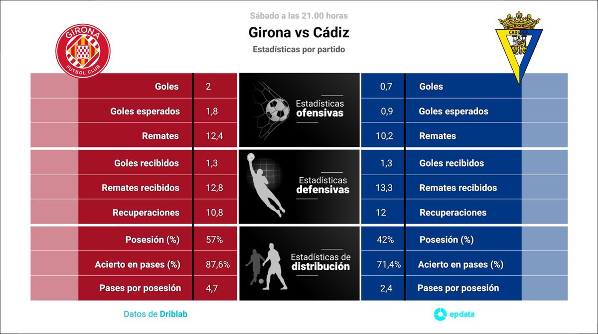Estadísticas previa Girona vs Cádiz. - EPDATA