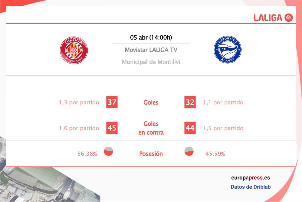En el ámbito ofensivo, el equipo rojiblanco supera al albiazul en goles por partido con 1,3 goles por encuentro del primero frente a 1,1 del segundo, según las estadísticas de Driblab consultadas por Europa Press. En cuanto a la calidad de las ocasiones de gol generadas, el equipo catalán también supera al vitoriano con 0,9 goles esperados frente a 0,8.