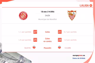 Estadísticas previa Girona vs Sevilla. - EPDATA