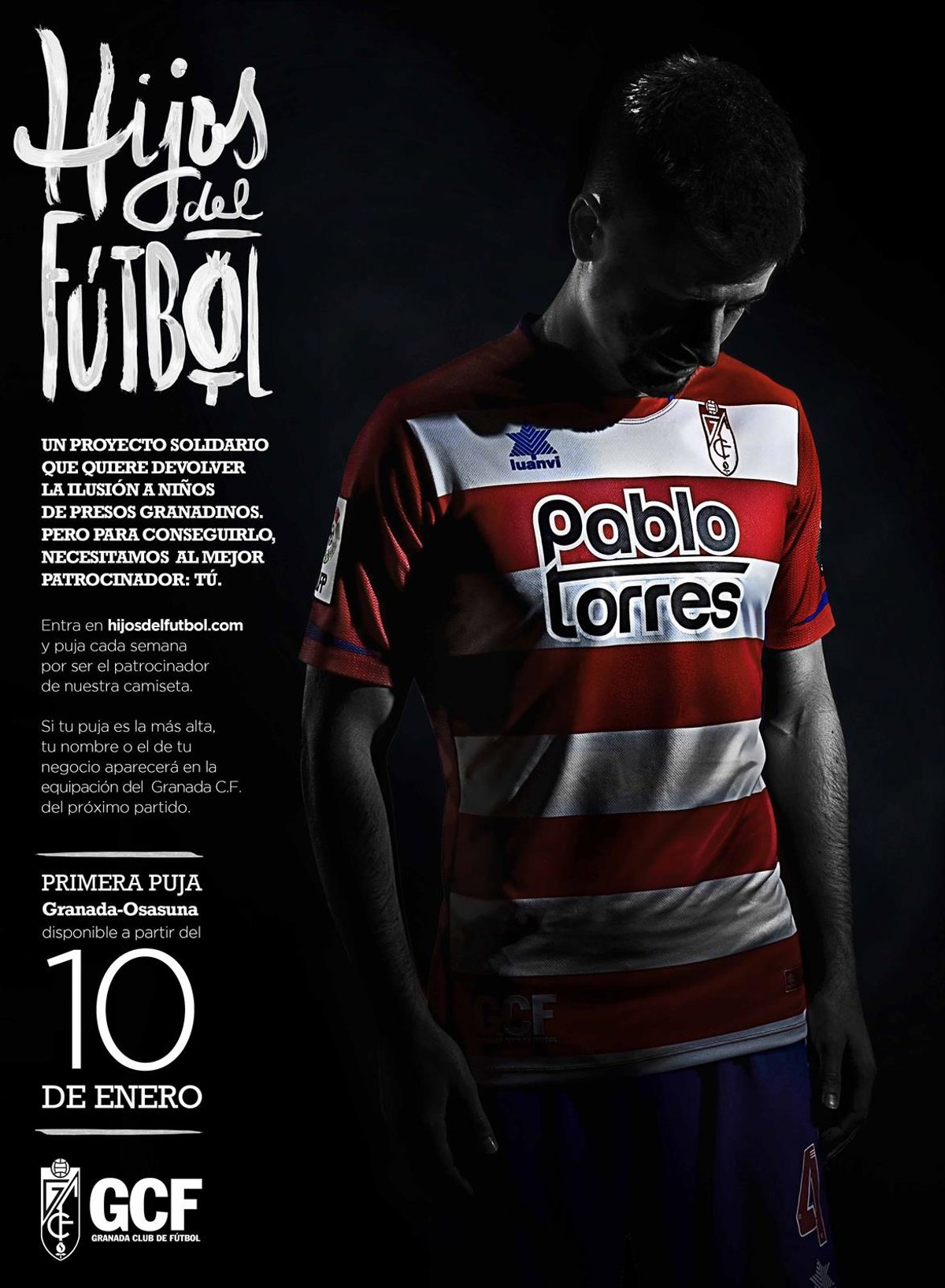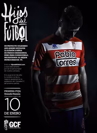 Bajo el nombre 'Hijos del Fútbol', esta iniciativa pretende que en los 19 partidos de la segunda vuelta de la Liga se realice una puja en la web 'hijosdelfutbol.com'. Así, todo aquel que lo desee podrá pujar para que su nombre aparezca en la camiseta del Granada del siguiente partido.