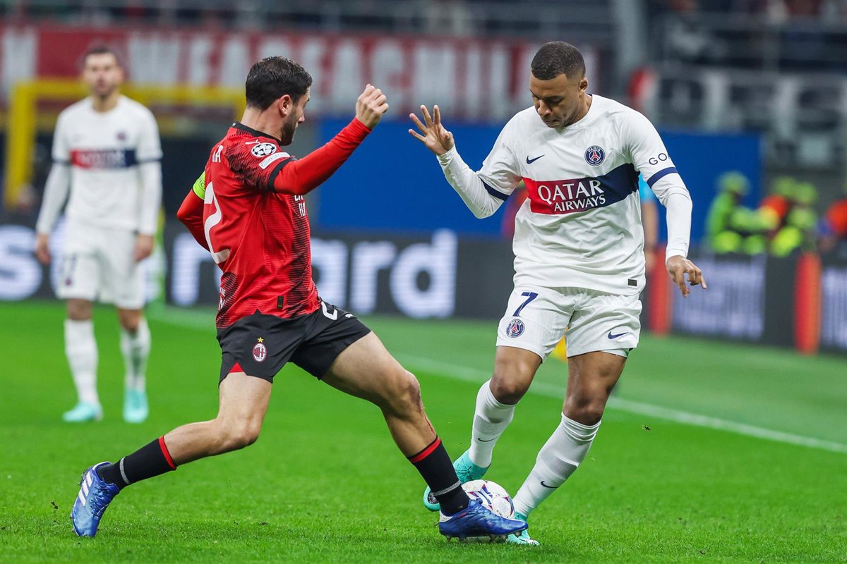 Kylian Mbappe, jugador del PSG, en una acción en el partido de Champions ante el Milan. - Fabrizio Carabelli / LiveMedia / AFP7 / Europa Pre