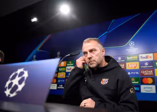 Barcelona Coach Hansi Flick attends a press conference, ahead of Tuesday's UEFA Champions League quarter-final second leg soccer match against Borussia Dortmund - Bernd Thissen/dpa
