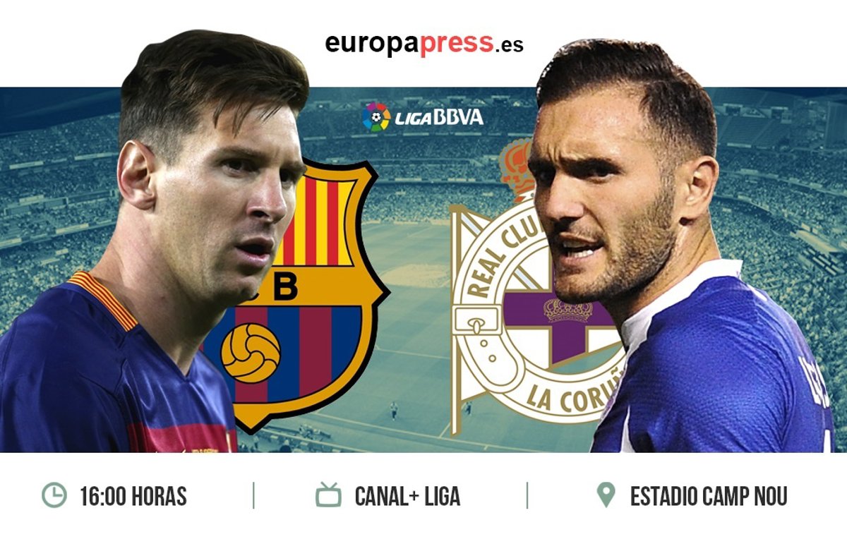El Deportivo de La Coruña, busca continuar con las buenas sensaciones y buen juego que está desplegando esta temporada y dar, así, un susto a los azulgrana. El partido, que empezará a las 16:00 horas, podrá seguirse a través de Canal + Liga.