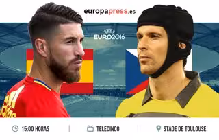 La selección española de fútbol debuta en la Eurocopa de Francia ante la República Checa. España comienza su andadura en el campeonato defendiendo el título que ganó en 2012, y es una de las favoritas a alzarse de nuevo con el triunfo final. Vicente del Bosque ha configurado una selección con muchos nombres nuevos, confirmando así el 'cambio tranquilo' que prometió hacer tras la mala imagen dada en el mundial de Brasil de 2014.