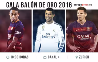 Esta tarde, a partir de las 18:30 horas, comenzará la Gala del Balón de Oro, donde se entregará el Balón de Oro al mejor jugador del año 2015 para FIFA y France Football. Los finalistas de esta edición son Cristiano Ronaldo, del Real Madrid, Lionel Messi y Neymar, ambos jugadores del F.C. Barcelona.