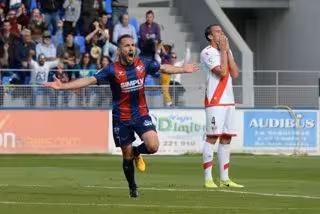 En El Alcoraz, el Huesca alargó su buen momento de forma con su duodécima jornada consecutiva sin perder y dejó atrás dos empates seguidos con una victoria por 2-0 ante un Rayo Vallecano que jugó más de una hora con un jugador menos por la expulsión de Galán.