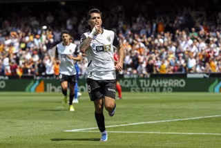 Archivo - Hugo Duro celebra un gol con el Valencia CF en LaLiga EA Sports 24-25 - Ivan Terron / AFP7 / Europa Press - Archivo