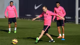 La primera plantilla del FC Barcelona se ha ejercitado este jueves por la mañana después de descansar el miércoles y lo ha hecho con la presencia al completo de Andrés Iniesta, que se ha entrenado con sus compañeros pese a no tener el alta médica y que apunta a poder viajar a Valencia para medirse a los 'che' el domingo.