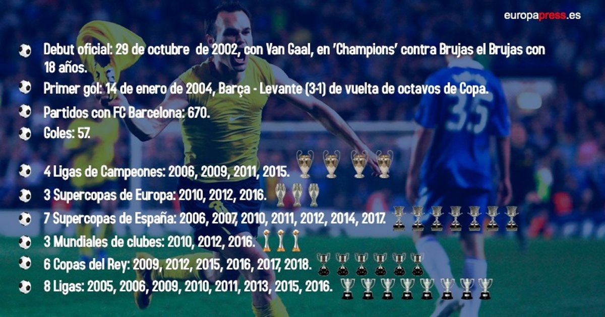 Pese a tener un contrato vitalicio, ha decidido poner fin a su etapa en el FC Barcelona y hacer las maletas hacia China, al fútbol asiático tan distinto al europeo pero que tanto rédito da a los grandes futbolistas en su ocaso. Le queda fútbol a Iniesta, tanto que podría seguir regalándolo a los barcelonistas, pero siendo fiel a su filosofía ha preferido irse antes de sentirse echado. Y se va como uno de los más grandes futbolistas del club, como estandarte y garante del mejor Barça de la historia.