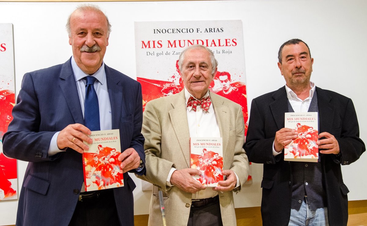 El exdirector general del Real Madrid Inocencio Arias presentó este martes su libro 'Mis Mundiales', donde realiza un recorrido desde 1950 hasta la actualidad repasando sus vivencias en torno a los Mundiales de la selección española, mezcladas con el contexto histórico y diplomático de la época de cada uno de ellos.