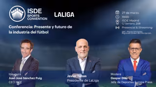El presidente de LaLiga, Javier Tebas, y el CEO de ISDE, Juan José Sánchez Puig, presentarán este jueves 27 (19:00 horas), en la sede de ISDE en Madrid, la sexta edición del ISDE Sports Convention (ISC), el congreso internacional del derecho y la industria del deporte, que tendrá lugar el 6 de junio en la capital de España.