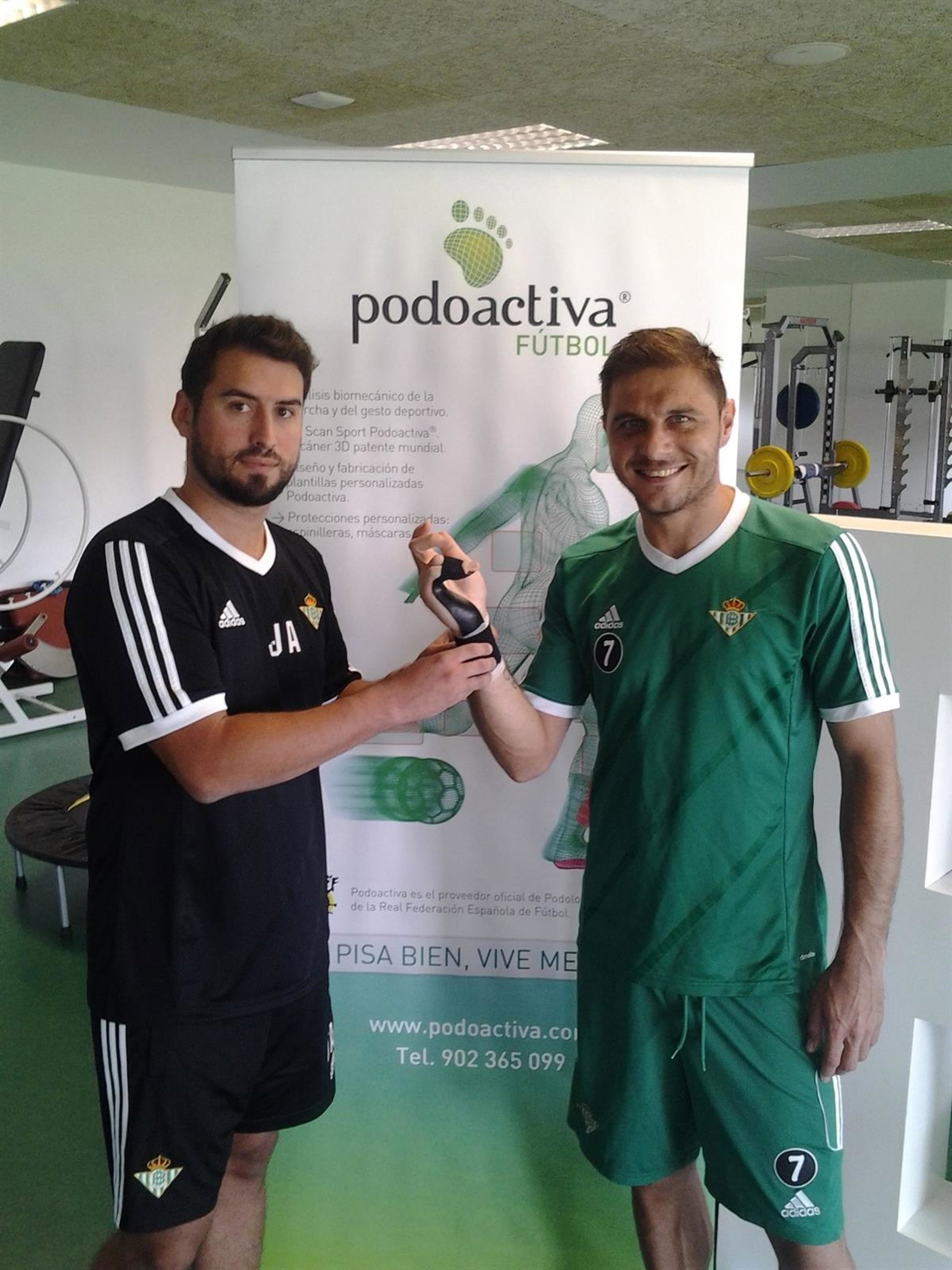 El extremo del Real Betis Joaquín se recupera de su fractura en la mano derecha con una novedosa férula 3D, que sustituye a la tradicional escayola, creada por la empresa Younext, filial de la empresa Podoactiva, bajo la supervisión del jefe de los servicios médicos del club, doctor Calero.