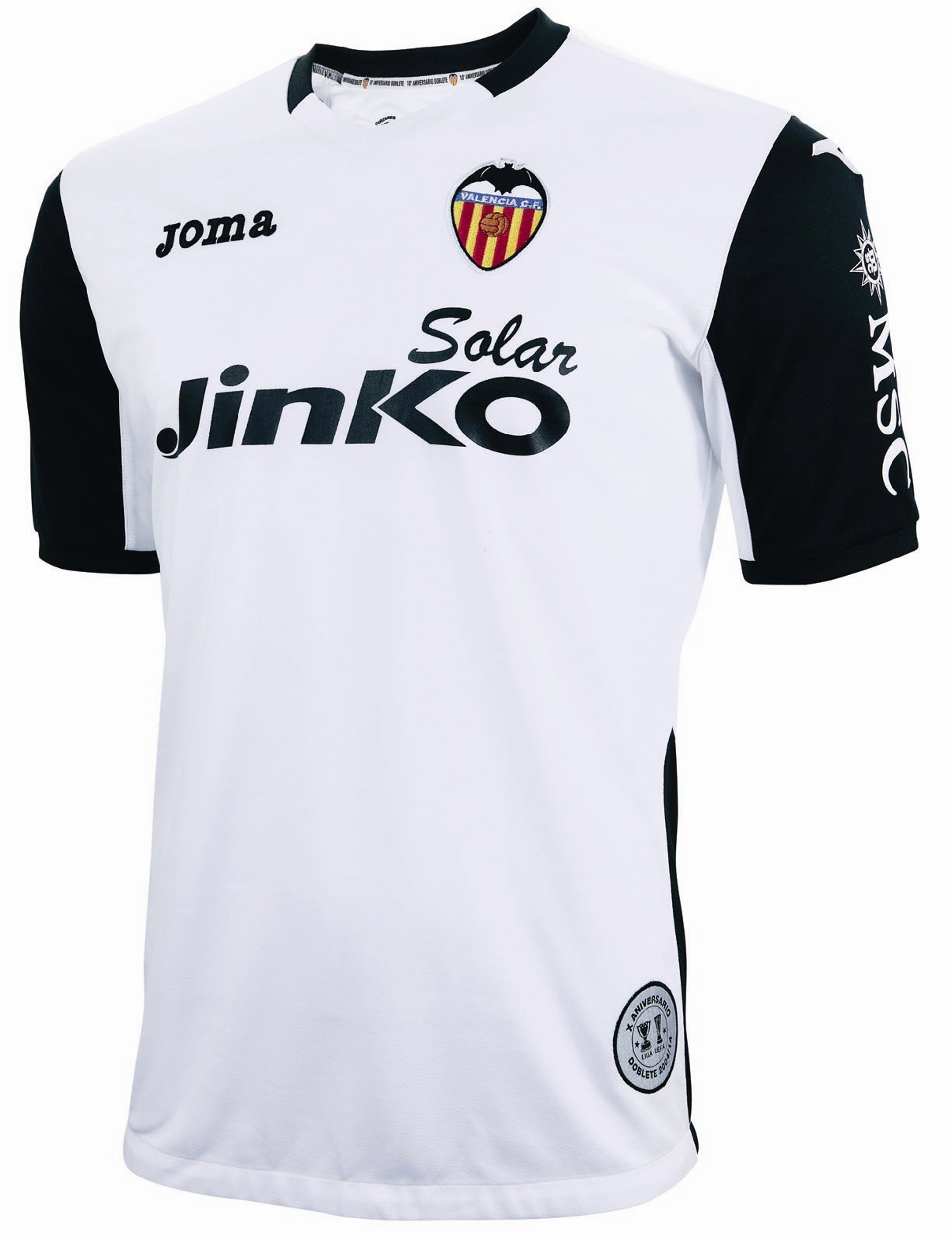 La marca deportiva Joma y el Valencia conmemorarán el décimo aniversario del histórico 'doblete' de Liga y Copa de la UEFA de la temporada 2003-04 con el lanzamiento de una nueva camiseta, que el conjunto 'ché' estrenará el domingo 1 de diciembre en el partido de la Liga BBVA contra Osasuna en Mestalla.