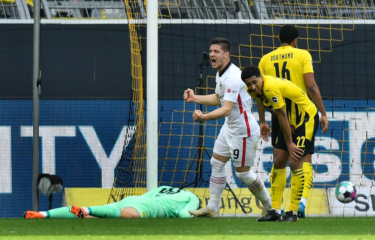 Luka Jovic celebra un gol del Eintrchat ante el Borussia Dortmund en la Bundesliga 2020-2021 - Martin Meissner/Pool AP/dpa