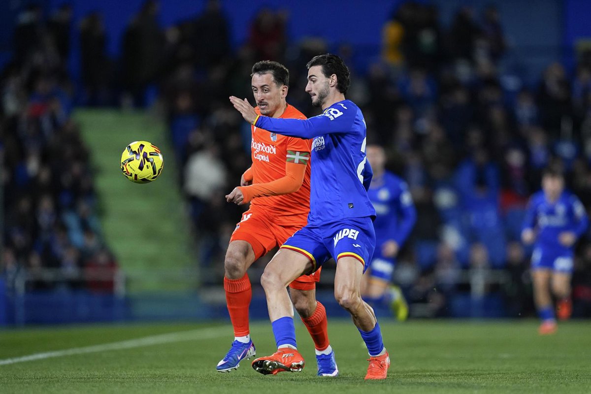 El defensa del Getafe Juan Iglesias señaló a Mikel Oyarzabal, como capitán de la Real Sociedad, por los insultos a su mujer en el tenso final de encuentro este miércoles en Anoeta (0-1, y criticó que los vascos "vayan dando ejemplo", al tiempo que dio la "enhorabuena" a su equipo por los tres puntos y la temporada.