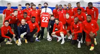 Archivo - La selección de fútbol de Canadá junto al presidente del país, Justin Trudeau - Jeff Mcintosh/The Canadian Press / DPA - Archivo