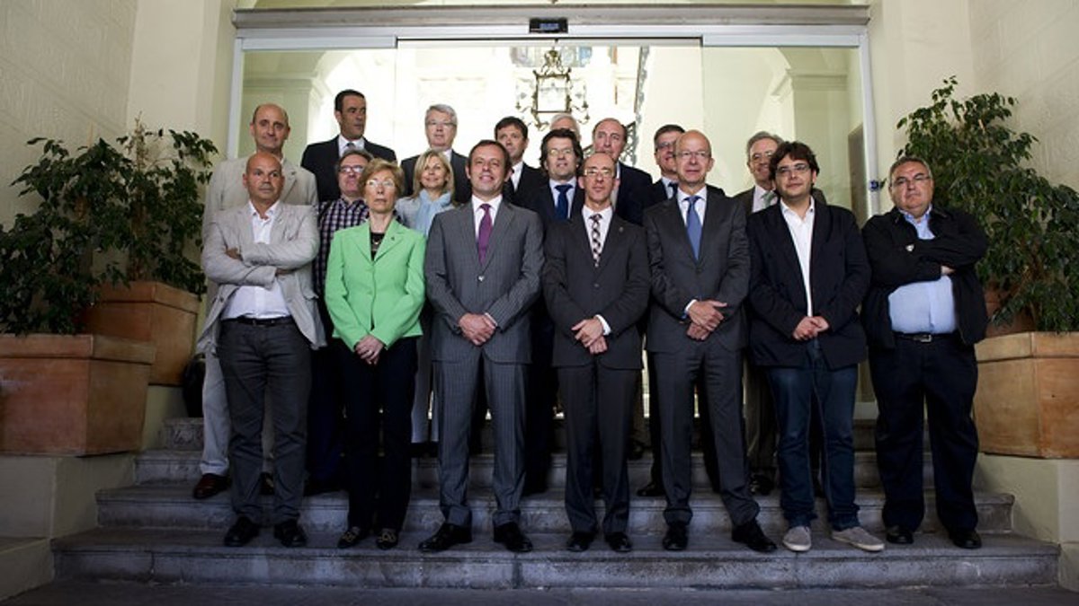 El presidente del FC Barcelona, Sandro Rosell, y el resto de su Junta Directiva celebran este lunes en la localidad de Sitges (Barcelona) una reunión itinerante dentro de la iniciativa de promoción del club por diferentes municipios catalanas, y antes de empezar la reunión por la tarde han paseado por la costera población del Garraf tras ser recibidos por el alcalde y antes de almorzar.