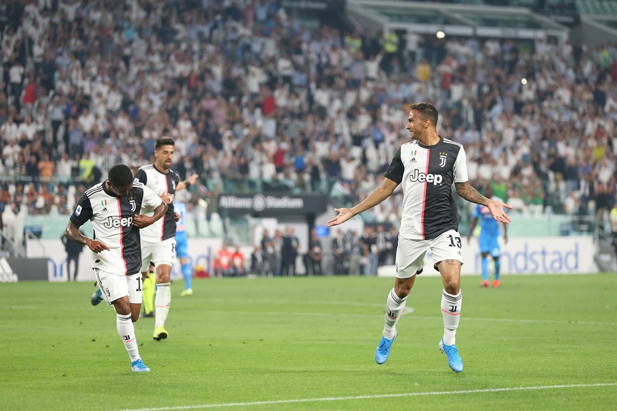 31 August 2019, Italy, Turin: Juventus's Danilo (R) celebrates scoring his side's first goal with team mates during the Italian Serie A soccer match between Juventus F.C. and S.S.C. Napoli at Allianz Stadium Photo: Jonathan Moscrop/CSM via ZUMA Wire/dpa - Jonathan Moscrop/CSM via ZUMA Wi / DPA