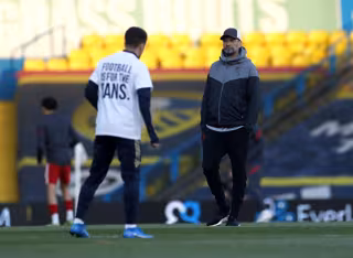 Juergen Klopp mira el calentamiento de los jugadores del Leeds portando camisetas en contra de la Superliga - Lee Smith/PA Wire/dpa