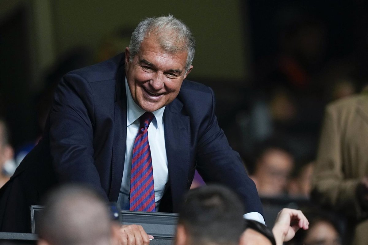 El presidente del FC Barcelona, Joan Laporta, en el partido ante el Rayo Vallecano. - Oscar J. Barroso / AFP7 / Europa Press