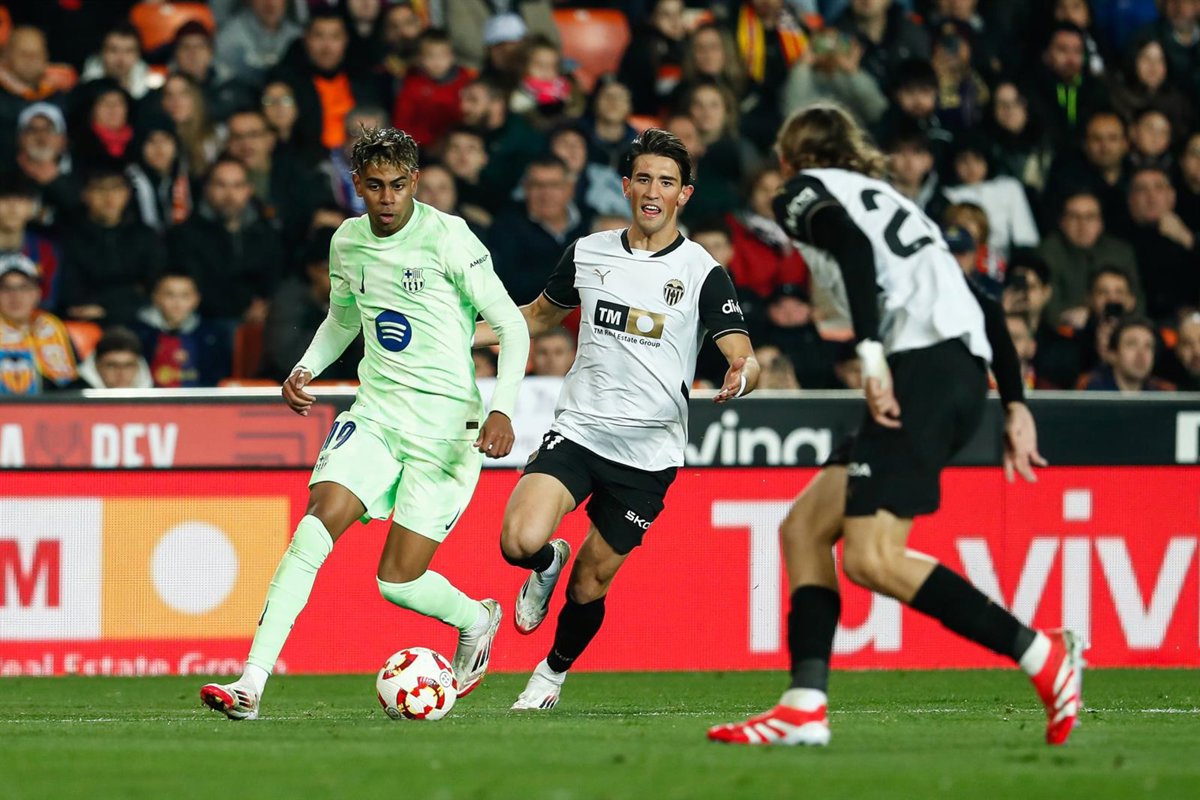 Archivo - Lamine Yamal y Jesús Vázquez en el Valencia-FC Barcelona en Mestalla de la pasada temporada - Irina R. Hipolito / AFP7 / Europa Press - Archivo