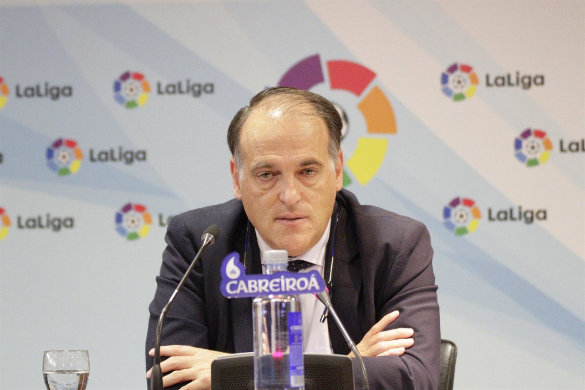 Javier Tebas, presidente de la Liga en rueda de prensa tras una asamblea de La Liga - EUROPA PRESS - Archivo