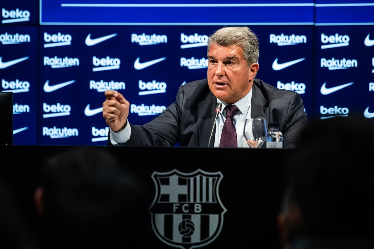 Archivo - Joan Laporta, President of FC Barcelona, attends during a press conference to valuaring and announcement of measures for tickets sales at Camp Nou stadium on April 19, 2022, in Barcelona, Spain. - Marc Graupera Aloma / AFP7 / Europa Press
