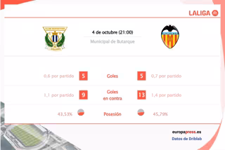 Estadísticas previa Leganés vs Valencia. - EPDATA