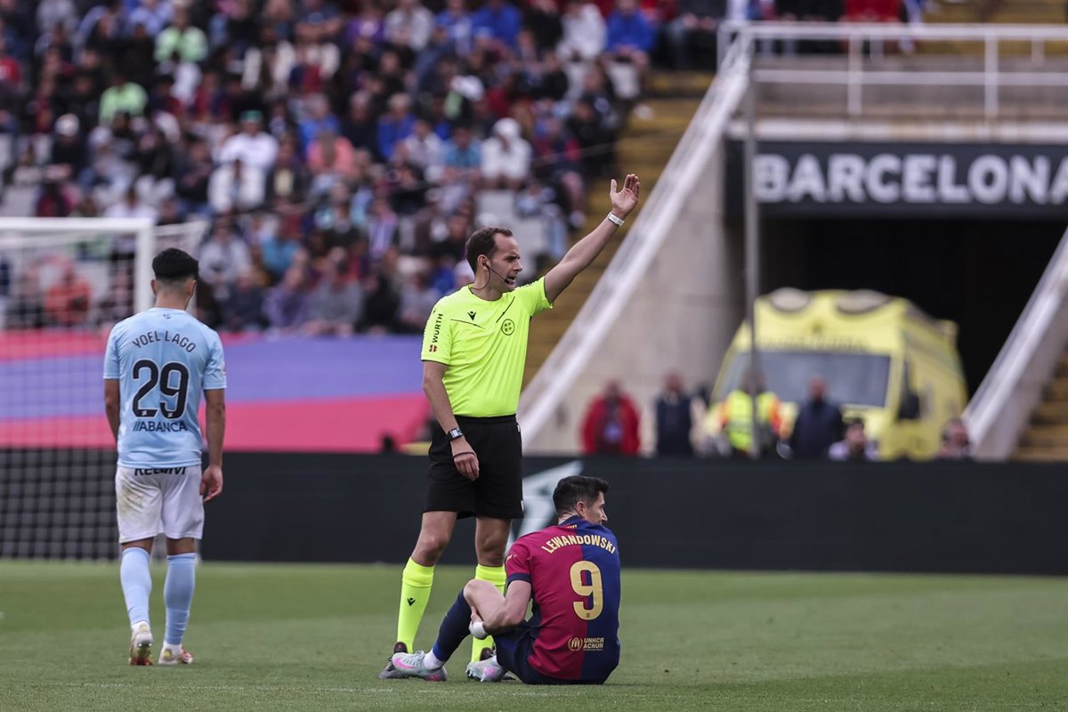 El atacante polaco, que disputaba su partido 100 en LaLiga y buscaba también su gol 100 con la camiseta azulgrana, se lesionó en la segunda mitad del duelo en el que los culés se impusieron al conjunto gallego en Montjuïc y tuvo que abandonar el campo en el minuto 78, sustituido por Gavi y cuando los de Hansi Flick ya habían logrado igualar la contienda 3-3.