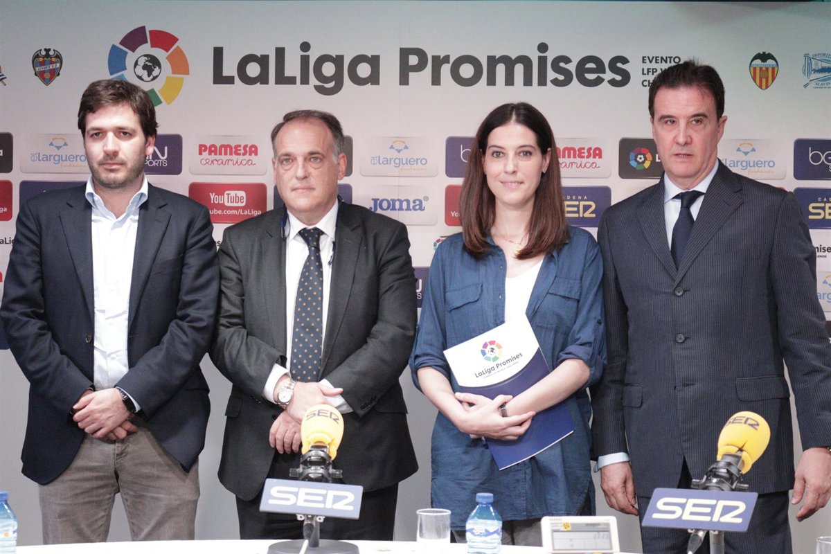 El acto de presentación, celebrado en el estudio central de la Cadena SER, contó con la presencia del presidente de LaLiga, Javier Tebas; el consejero delegado del Villarreal, Fernando Roig, y el presidente de la Fundación El Larguero, José Ramón de la Morena.