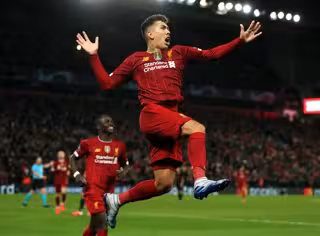 Roberto Firmino celebra el 2-0 en el Liverpool-Atlético de Madrid de la Liga de Campeones 2019-2020 - Peter Byrne/PA Wire/dpa