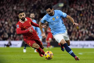 El delantero egipcio del Liverpool, Mohamed Salah, and el mediocentro alemán del Manchester City, Ilkay Gundogan, luchan por el balón. - Peter Byrne/PA Wire/dpa