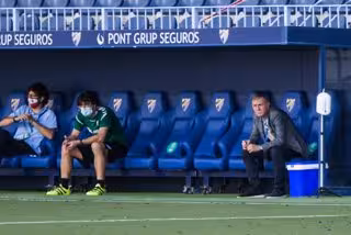 Archivo - Lucas Alcaraz sentado en el banquillo de La Rosaleda durante su etapa como entrenador del Albacete Balompié - Joaquin Corchero / AFP7 / Europa Press - Archivo