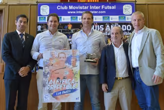 El exportero del Movistar Inter Luis Amado se mostró emocionado y muy agradecido durante su despedida, este miércoles, como futbolista, en un acto que se celebró en el Ayuntamiento de Torrejón de Ardoz donde recibió el cariño de sus compañeros, junta directiva, cuerpo técnico y aficionados recordando que el fútbol sala "ha sido, es y será" siempre su vida.