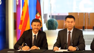 Tras anunciar el club su contratación el lunes por la tarde en un comunicado, el técnico asturiano ha firmado este miércoles el contrato que le vincula al primer equipo blaugrana para las dos próximas temporadas, en su tercera etapa barcelonista tras ser jugador y técnico del filial previamente.