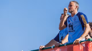 Luis Enrique Martínez da instrucciones a sus jugadores con un pequeño 'walkie-talkie' - PRENSA RFEF
