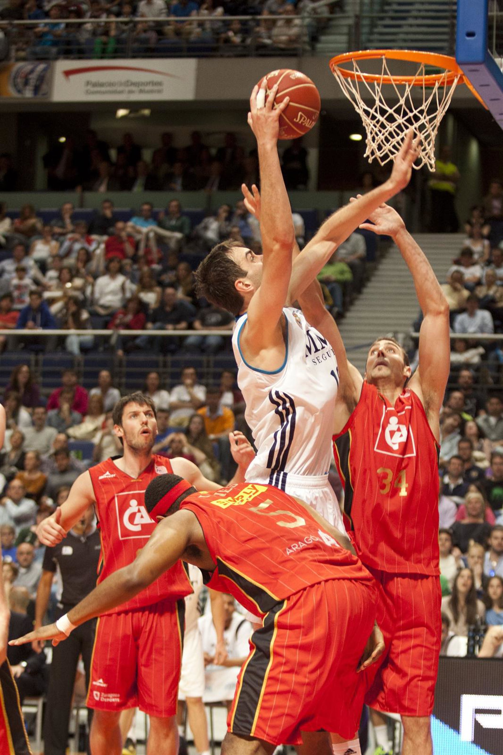 Sin dar tiempo al CAI de reengancharse, el acierto madridista mantuvo las distancias (41-23), con Begic y Carroll reclamando protagonismo y Sergio Rodríguez entrando en juego. Pablo Aguilar tiraba de los maños pero el Madrid, con la directa puesta no cesaba en su sangrante acierto, hasta que en el tercer cuarto terminó llegando la sentencia. Un parcial de 21-4 para los de Pablo Laso dejó tocado y casi hundido a los de Abós (74-49).