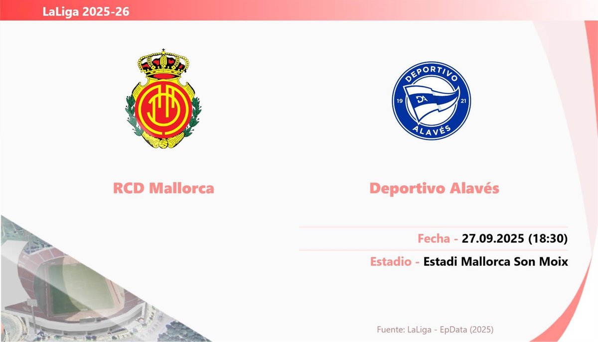 El partido que enfrenta a Mallorca y Deportivo Alavés de la jornada 7 de LaLiga EA Sports 2025-26 se disputará el sábado 27 de septiembre a las 18.30 horas en Son Moix.