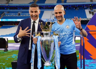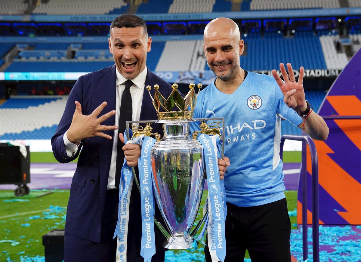 Khaldoon Al Mubarak posa junto a Pep Guardiola tras ganar la Premier League 2021-2022 - Martin Rickett/PA Wire/dpa