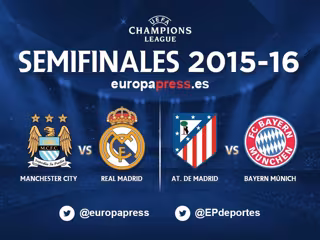 MADRID, 15 Abr. (EUROPA PRESS) - El Real Madrid, ganador hace dos años al superar en la prórroga al Atlético de Madrid, se medirá en unas semifinales inéditas a un Manchester City que nunca en su historia había llegado a esta ronda y que, de la mano del exentrenador blanco Manuel Pellegrini, intenta meterse de una vez por todas en la élite del fútbol europeo. Los 'citizens', que apearon al París Saint-Germain en los cuartos de final, tendrán el duelo de ida en casa y deberán jugarse el pase a la que sería su primera final en el Santiago Bernabéu, feudo inquebrantable donde el Real Madrid remontó con solvencia (3-0) el 2-0 en contra de la ida contra el Wolfsburgo en la ronda anterior. El morbo llegará con el regreso de Pellegrini, quien se fue del Real Madrid por la puerta de atrás tras una única temporada, la 2009/10, en la que no ganó ningún título y tuvo problemas en su relación con el presidente, Florentino Pérez. Ahora, el chileno tiene en su poder tomarse esa particular revancha, aunque su City, inexperto en estos lares, sufre en defensa y se mide con el equipo más goleador y al 'pichichi' de la competición, Cristiano Ronaldo. Si bien el portero Joe Hart está en un buen estado de forma, la defensa y el centro del campo 'citizen' hacen aguas, como se vio en los errores cometidos contra el PSG en los cuartos de final. El posible regreso de Touré Yaya daría oxígeno a la medular y ayudaría a que el 'Kun' Agüero y Kevin De Bruyne, los máximos peligros del City, estuvieran mejor asistidos. Los únicos enfrentamientos entre ambos se remontan a la fase de grupos de la temporada 2012/13, cuando el Real Madrid ganó en el Bernabéu (3-2) y empató en el Etihad Stadium (1-1), resultados que ahora darían el pase a la final al equipo blanco, quien tras la remontada contra el Wolfsburgo llega crecido a esta eliminatoria. También está en ese estado de ánimo un Atlético de Madrid que, en su quinta presencia en unas semifinales, se medirá al poderoso Bayern de Múnich de Pep Guardiola dispuesto a dar la campanada como ya lo ha hecho en los cuartos de final contra el exequipo del técnico, el FC Barcelona. De momento sabe que esta vez el efecto Calderón, con el que remontaron el 2-1 del Camp Nou, lo tendrá en la ida. Solo existe el precedente entre ambos de la final de la entonces Copa de Europa de 1974. Y, más allá de que Guardiola regrese al Calderón, la importancia histórica de este enfrentamiento tendrá más peso dado que brindará la oportunidad al Atlético de cobrarse la revancha de aquella final, jugada a dos partidos debido al empate en el King Baudouin Stadium de Bruselas (1-1, en la prórroga). En el duelo de desempate, jugado en el mismo estadio, aquel Bayern que encadenaría tres Copas de Europa seguidas arroyó al 'Atleti' (0-4) con dobletes de Uli Hoeness y Gerd Müller. Ahora, otro Müller, Thomas, es una de las muchas referencias del actual equipo bávaro, quien en la última campaña de Guardiola, antes de que se marche al Manchester City, quiere cerrar el ciclo con una Liga de Campeones que ya ganaron en 2013 con Jupp Heynckes y que se le está resistiendo al técnico de Santpedor. Los internacionales españoles Xabi Alonso y Thiago dominan un fuerte centro del campo donde el 'Rey Arturo' Vidal vuelve a reinar. Arriba, el poderío de Robert Lewandowski asusta igual que la atípica calidad de Müller o la velocidad en banda de Douglas Costa o Arjen Robben, estiletes a los que deberán atar en corto los de Simeone. Además, pese a sus excentricidades, la portería está más que bien guardada por Manuel Neuer pese a que la línea defensiva sea, quizá, donde pueda flojear más el Bayern. De hecho, superaron al Benfica en los cuartos por un ajustado 3-2 en el global y estando virtualmente y por unos minutos fuera de estas semifinales. Los partidos de ida se disputarán los días 26 y 27 de abril, en el Etihad Stadium y el Vicente Calderón, y los de vuelta, los días 3 y 4 de mayo en el Santiago Bernabéu y el Allianz Arena. El estadio de San Siro en Milán acogerá la final el 28 de mayo. Martes 26 abril: Manchester City - Real Madrid. Miércoles 27 abril: Atlético Madrid - Bayern Munich. Martes 3 mayo: Bayern Munich - Atlético Madrid. Miércoles 4 mayo: Real Madrid - Manchester City.