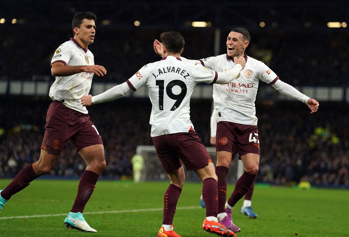 Sin embargo, Phil Foden igualó en el 53' con un fuerte zurdazo desde fuera del área y que entró junto a un poste de la portería defendida por Jordan Pickford. El equipo entrenado por Pep Guardiola culminó su remontada en el 64', gracias a un penalti transformado por Julián Álvarez.