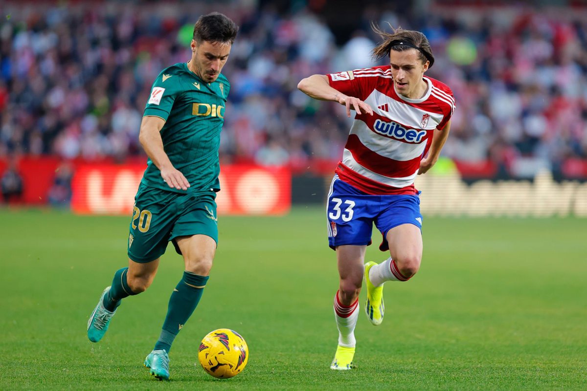 Álvaro Carreras, a la derecha, ante Iza Carcelén en un Granada-Cádiz - Alex Camara / AFP7 / Europa Press