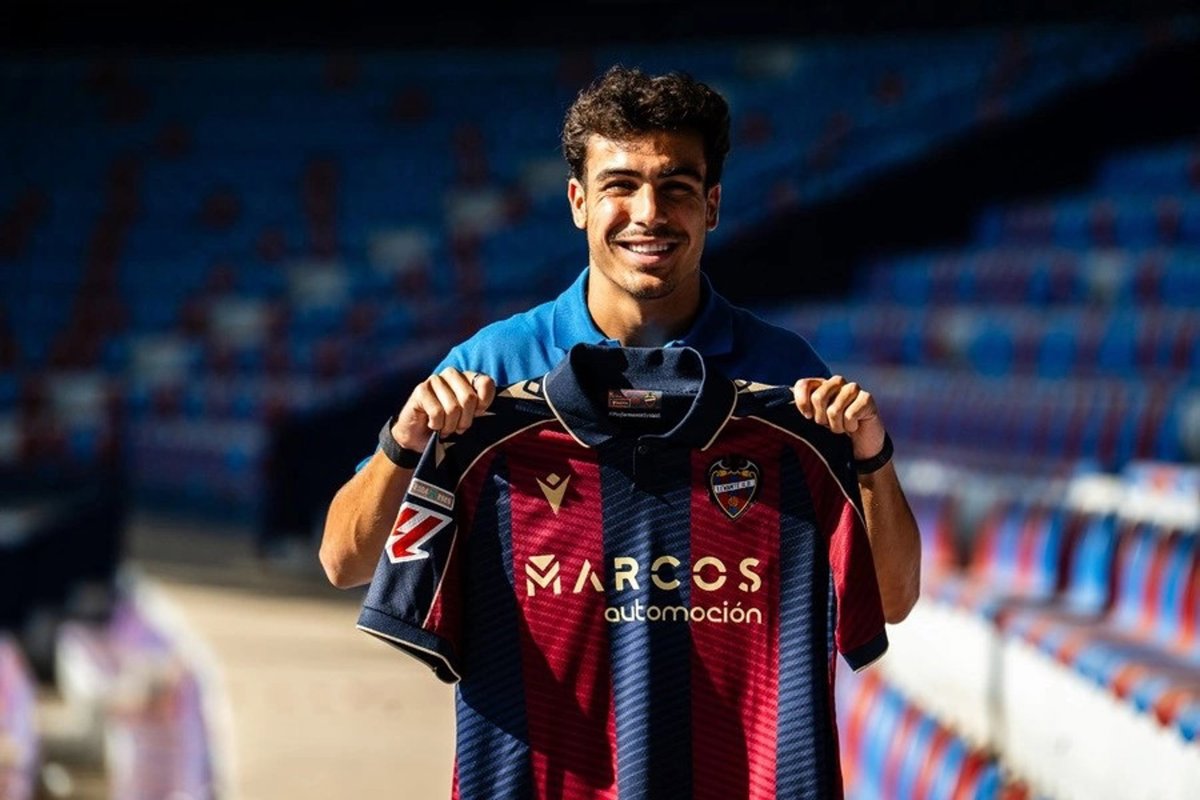El lateral español Manu Sánchez posando con la camiseta del Levante - LEVANTE UD