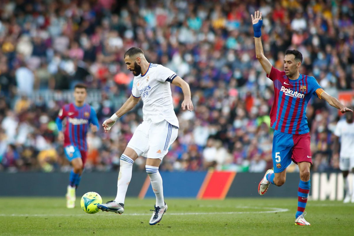 Archivo - Karim Benzema y Sergio Busquets en El Clasico de LaLiga Santander el pasado octubre de 2021 en el Camp Nou. - Oscar J. Barroso / AFP7 / Europa Press - Archivo