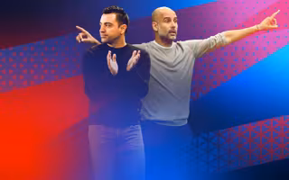 Xavi y Pep Guardiola en una promoción del amistoso solidario entre FC Barcelona y Manchester City - FCB